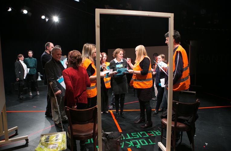 Glede na to, da je vsaka ponovitev odvisna od sodelovanja občinstva, je vsaka enkraten dogodek (epizoda), ki ustvarja niz novih dogodkov z nepredvidljivim izidom. Predstava se konča z javnim forumom, diskusijo o izkušnjah sodelujočih, in z zgodbami, ki smo jih pri tem povedali skupaj. Ker so zgodbe in družbena koreografija začasne, spremenljive in odvisne od nas samih, smo predstavo naslovili Communitas na izpitu.